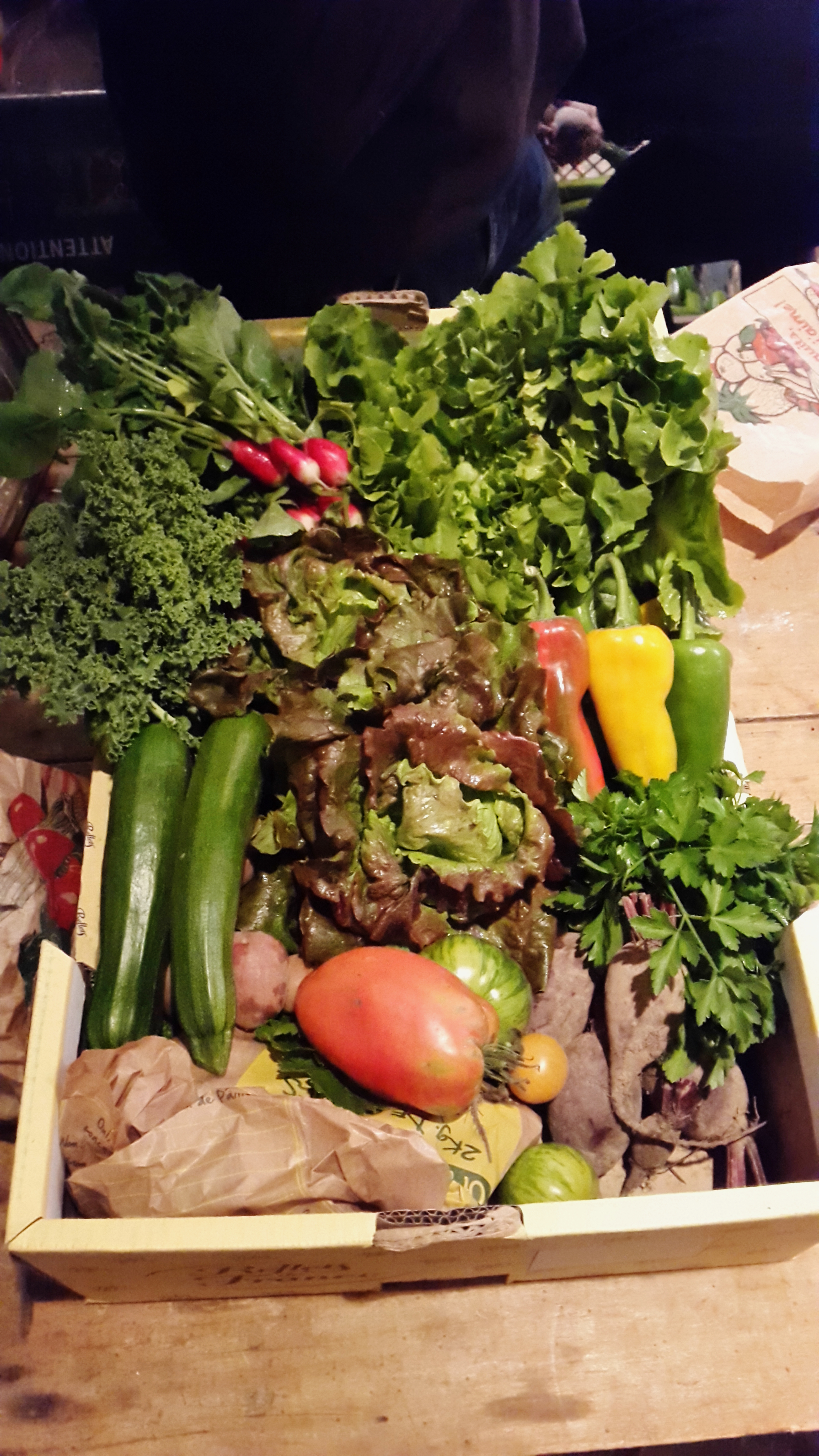 Voici la part entière (prévue pour 4 personnes, à diviser par 2 pour une 1/2 part de récolte) récupérée par nos amapiens :